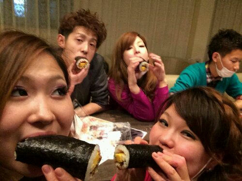 こんにちは〜( ^ω^ )★ 昨日は営業後に1日早いですが恵方巻きをみんなで頂きました〜o(^_^)o オーナーいつも私たちのためにありがとうございます!! 恵方巻きは話したらだめですがしゃべってしまいました〜(´・_・