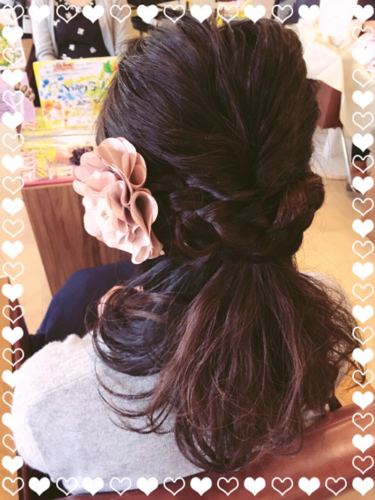 今日は、友達がセットに来てくれました☆ バーティーアップスタイルです!! ハーフアップにして大人可愛く❤️ ふわふわカールでガーリーに❤️ 毛先にハイライトをしてるので、動きが出て可愛いですね♪ いつも、セットさせてもら