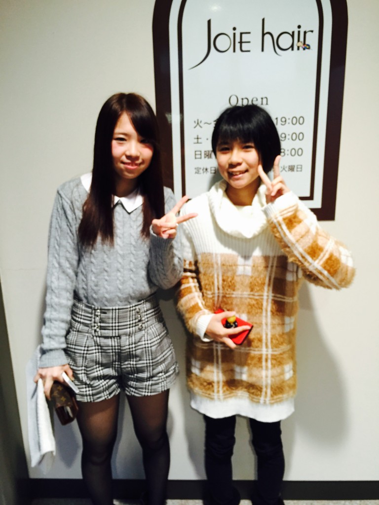 こんばんは。宮崎のタカキです。 今年もjoieは元気いっぱいで営業させて頂いてます!(^o^)/ 先日のお客様 お姉ちゃんのみはるちゃんは成人式に向けてピンクアッシュにカラーを妹のいづちゃんはショートボブにカットさせて頂